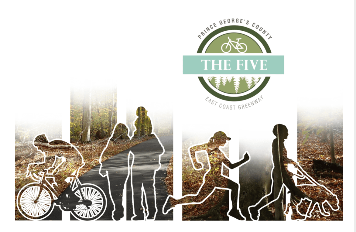 The Prince George’s County Five has arisen due to the demand for safer pedestrian and bicycling travelways for the highly active community of Prince George’s County, as well as the desire to connect the northern Prince George’s County trails of the East Coast Greenway with those within Washington D.C. area. This greenway would provide for a high level of connectivity and access to various existing trail systems and communities and improve safety for all users — regardless of age or ability.
